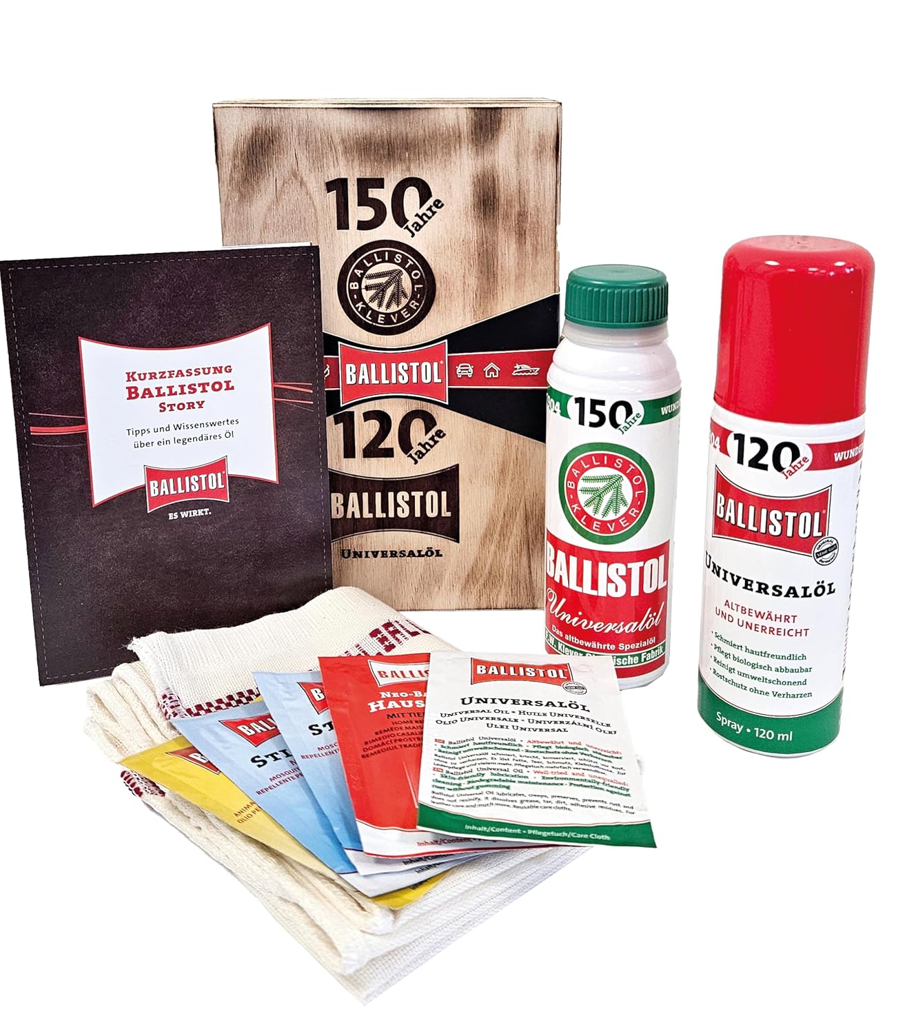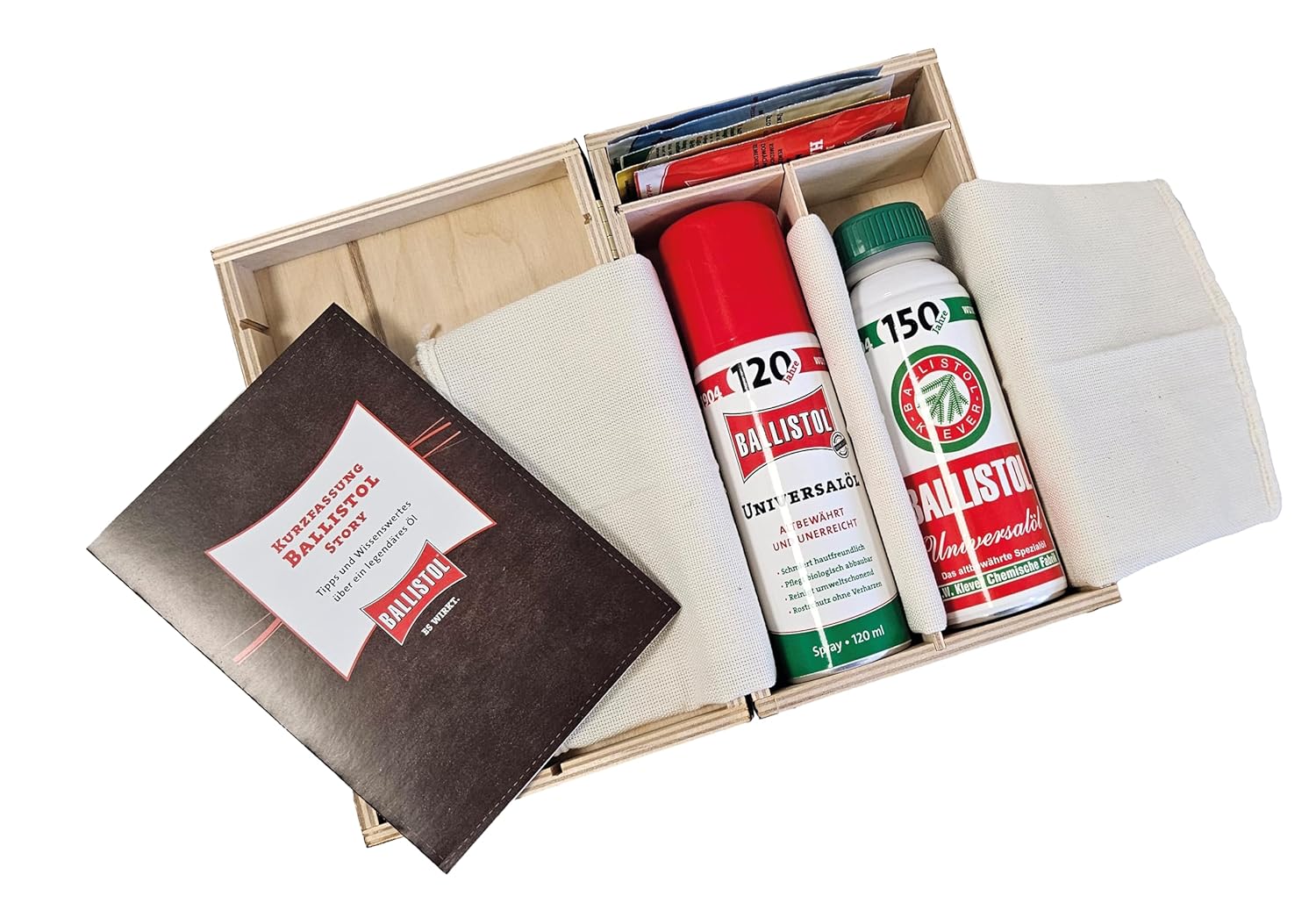 BALLISTOL Jubiläumsholzbox Universalöl 150 ml + 120 ml Spray
