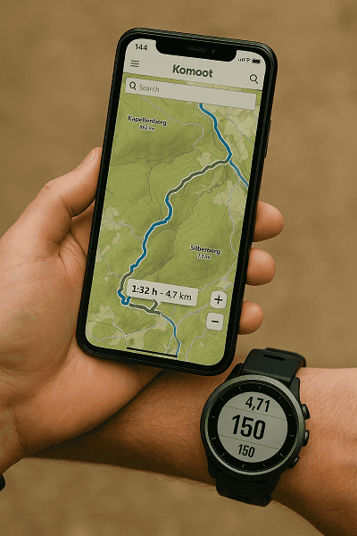 Viele GPS-Uhren und Apps (z. B. Komoot, Outdooractive) zeigen die erwartete Gehzeit automatisch an – allerdings oft zu optimistisch. Besser: Erst rechnen, dann kontrollieren.