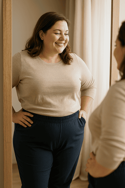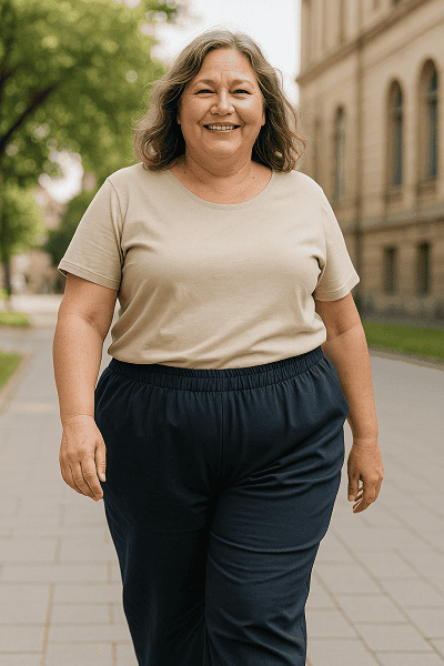So bequem Hosen mit Gummibund auch sind – nicht jedes Modell ist für jede Figur geeignet. Vor allem bei kräftigem Bauch oder rundem Po lohnt es sich, genauer hinzuschauen. Denn manche Schnitte können ungewollt auftragen oder den Fokus auf die falschen Stellen lenken.