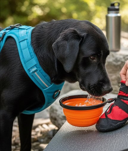 - Natürliche Quellen (Achtung Keime!): Lass Deinen Hund nicht wahllos aus Pfützen, stehenden Gewässern oder unklaren Bächen trinken. In vielen Gegenden bergen diese Gefahr von Giardien, Würmern oder Bakterien. Wenn Du Wasser aus Bächen nutzen musst, verwende einen Wasserfilter (den Du vielleicht ohnehin für Dich dabei hast) und einen sauberen, portablen Napf.