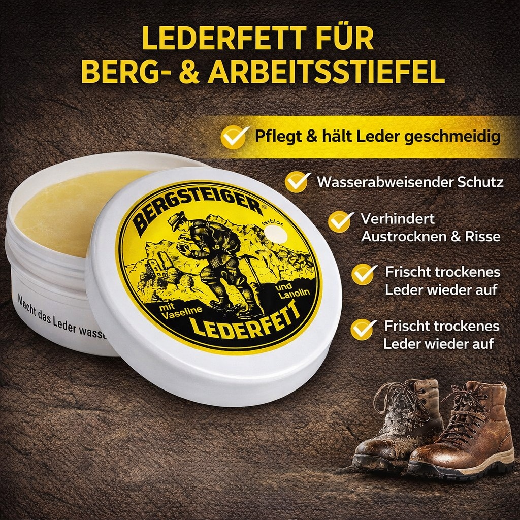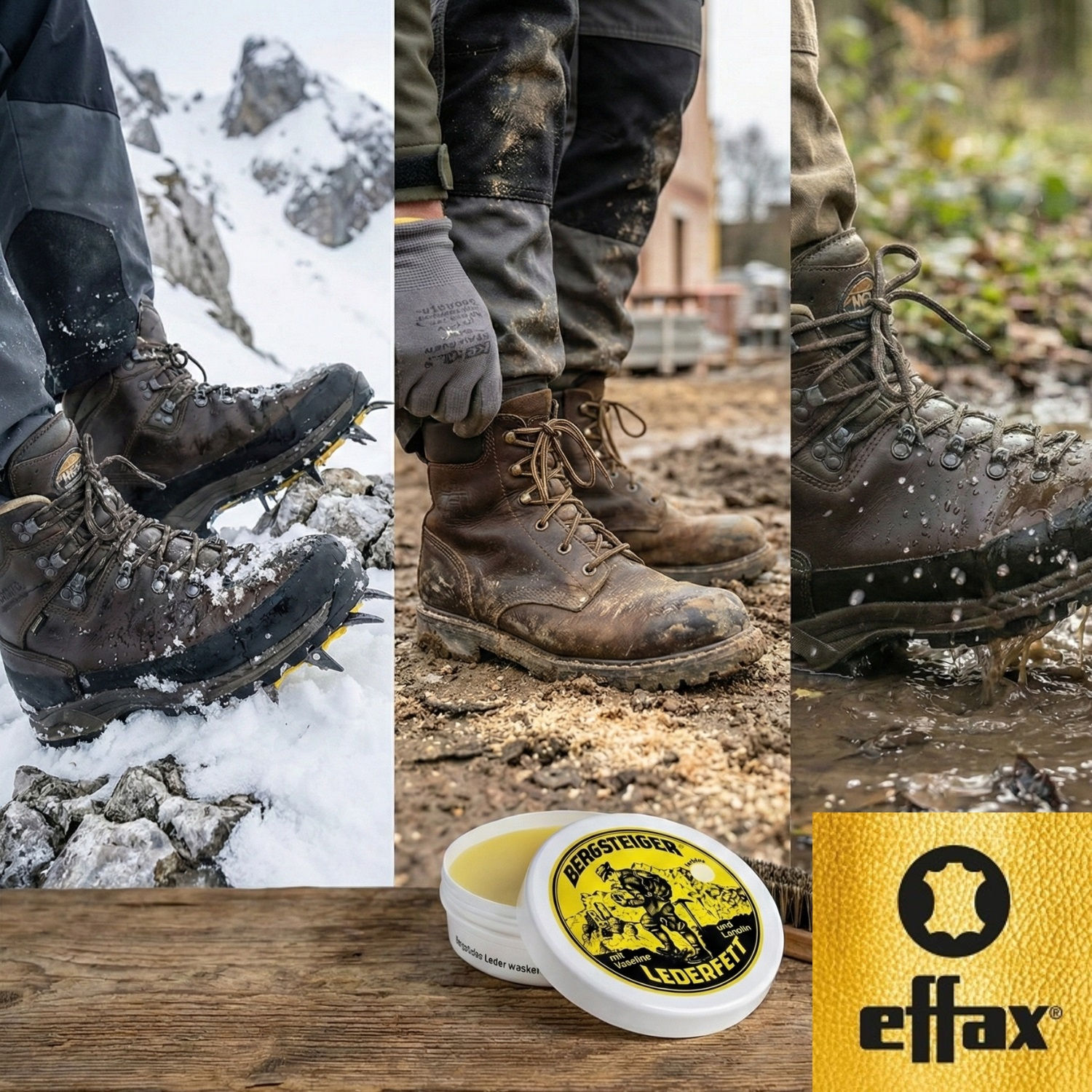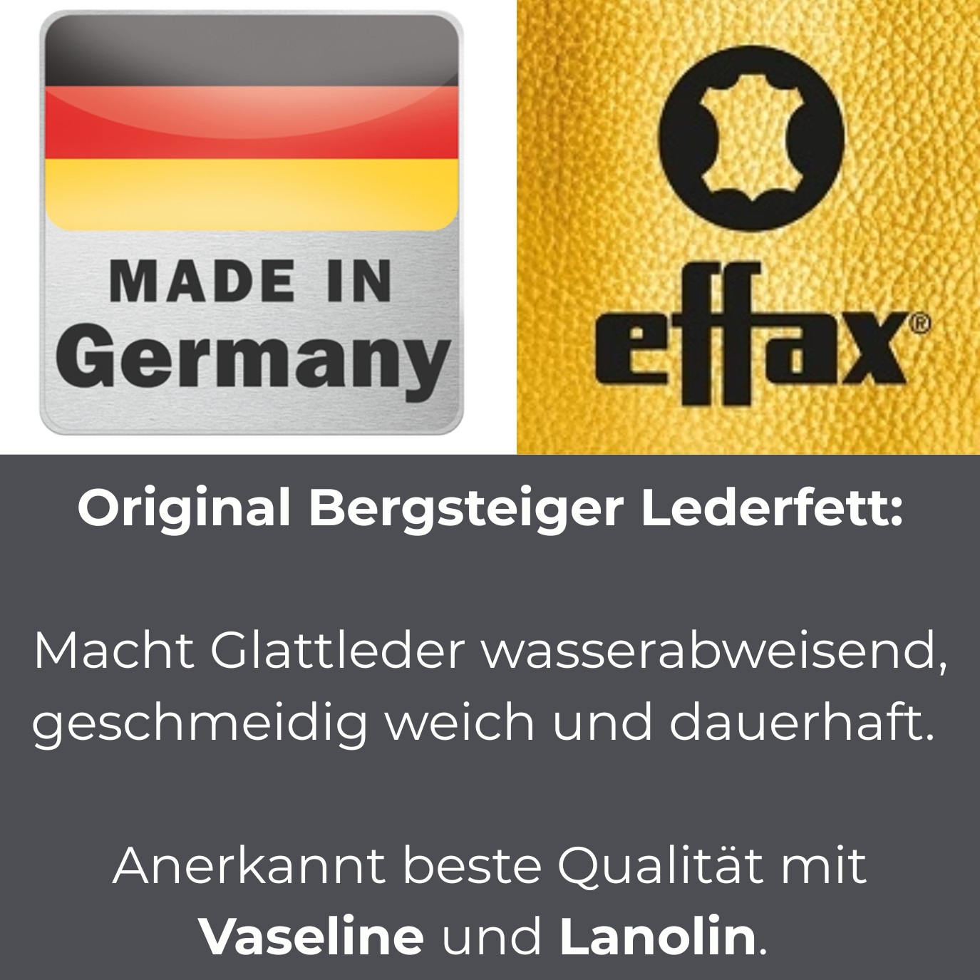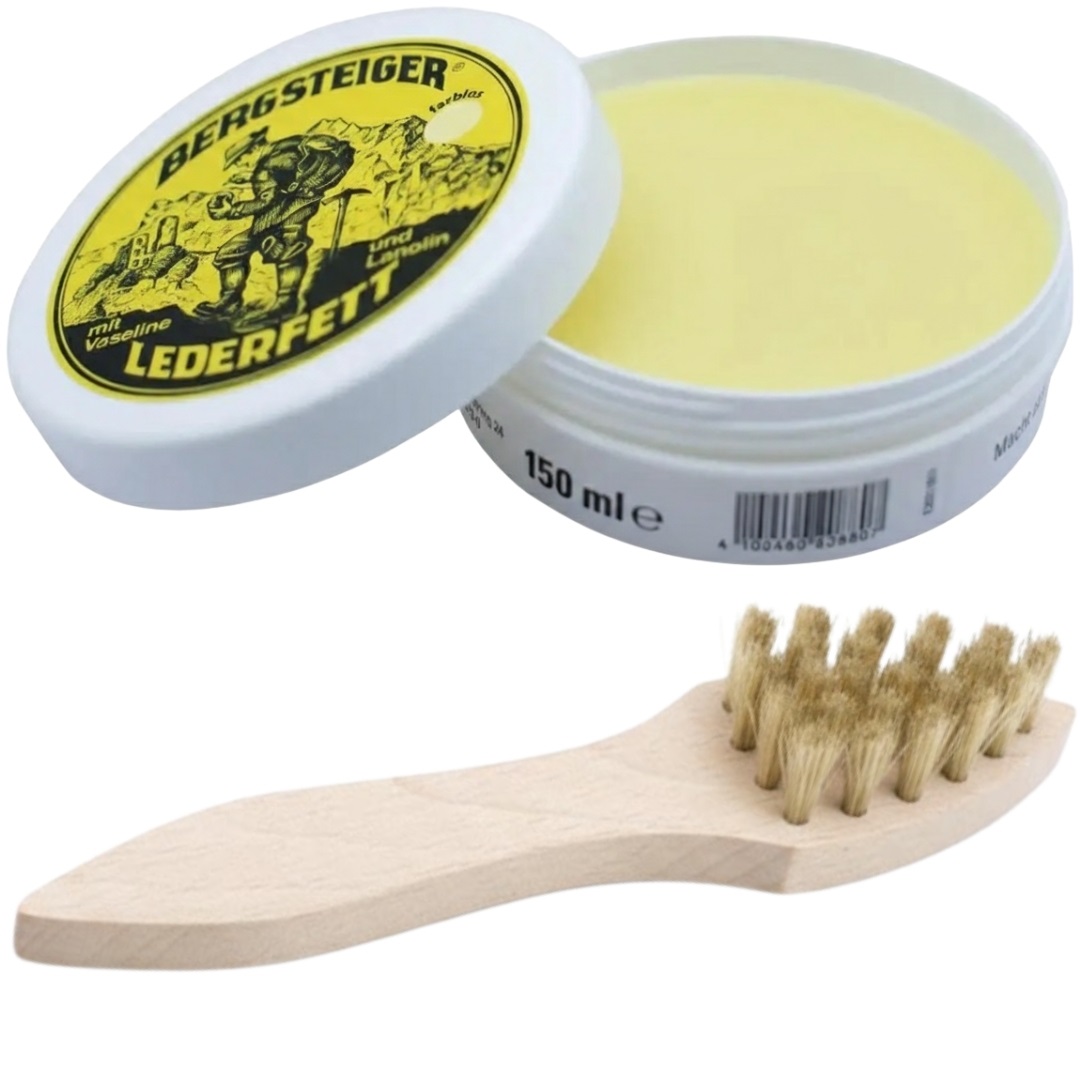 Dieses Pflege Set besteht aus Effax Bergsteiger Lederfett farblos und einer passenden Auftragbürste für die einfache Anwendung. Das Lederfett pflegt Glattleder intensiv, macht es wasserabweisend und erhält die Geschmeidigkeit auch bei starker Beanspruchung.