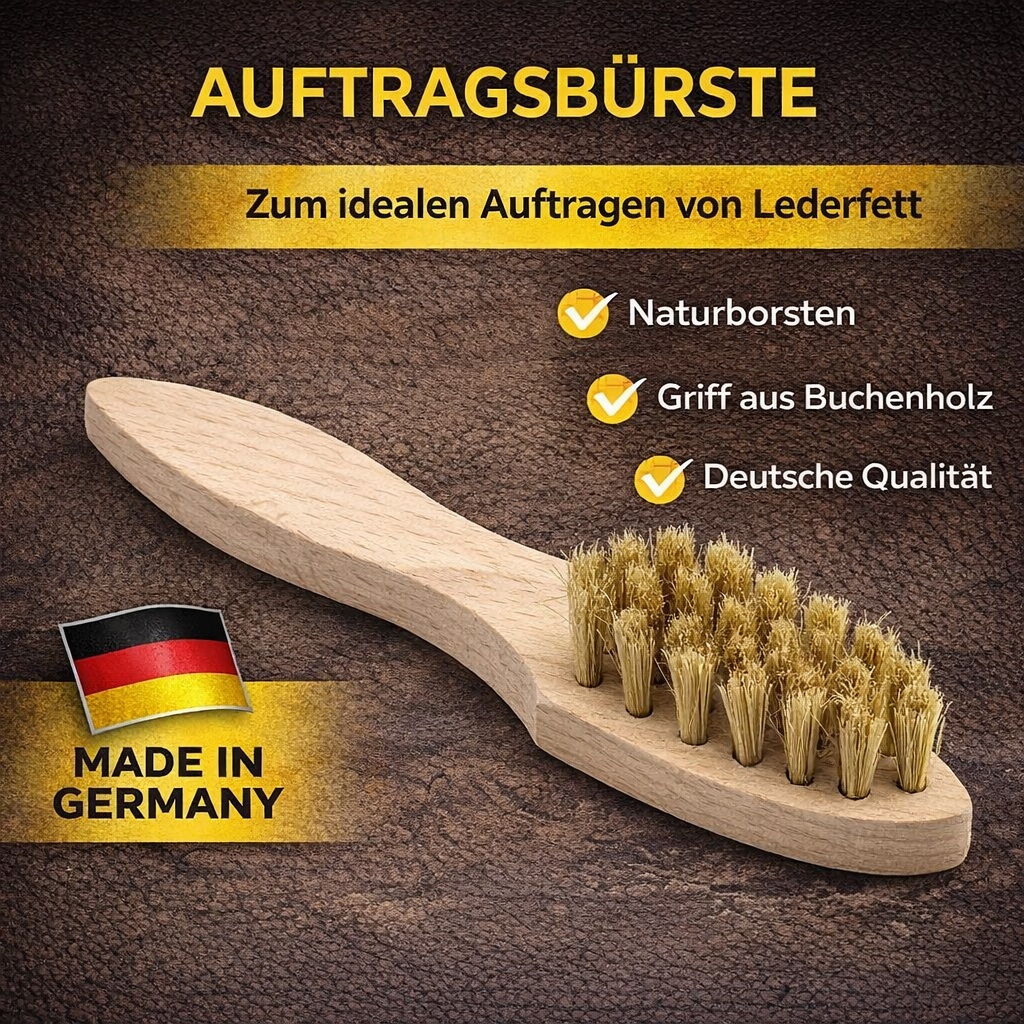 Die beiliegende Auftragbürste ermöglicht einen sauberen und gleichmäßigen Auftrag, ohne das Leder zu überfetten. Ideal geeignet für Bergschuhe, Arbeits- und Wanderstiefel sowie robuste Lederschuhe aus Glattleder.