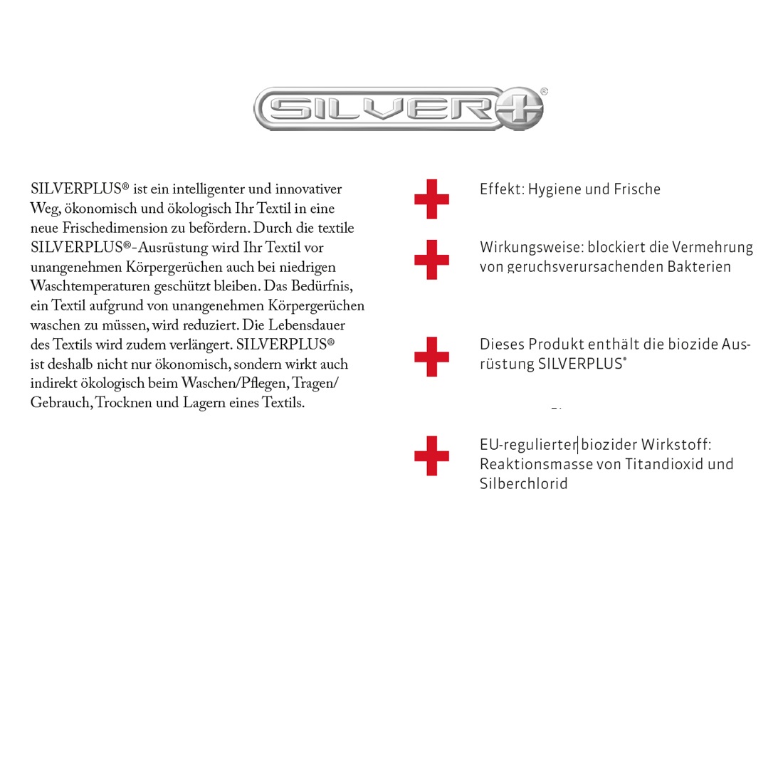 Das atmungsaktive Stretchmaterial gibt Dir volle Bewegungsfreiheit. Dank dryprotec-Technologie ist sie im Nu wieder trocken, selbst wenn Du ordentlich ins Schwitzen kommst. Die Silverplus-Ausrüstung sorgt dafür, dass Du Dich den ganzen Tag frisch fühlst - auch dann, wenn der Weg steiler wird als gedacht.