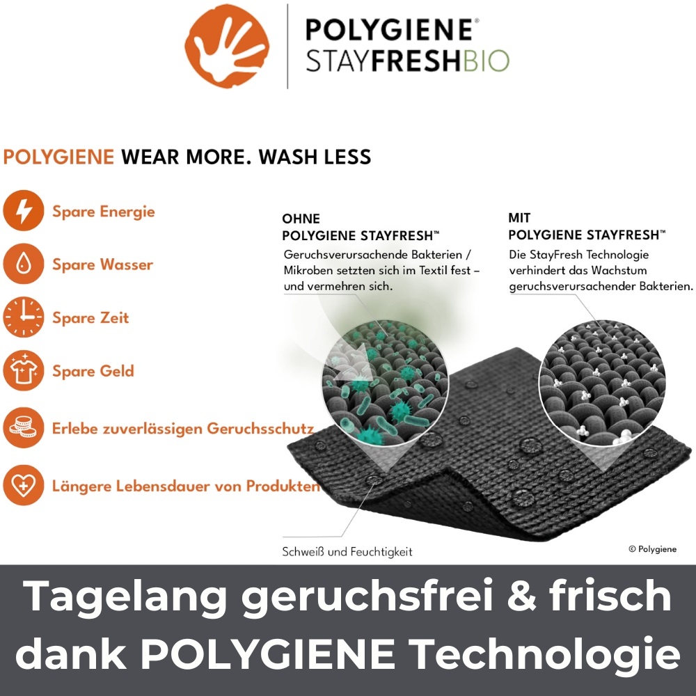 Das atmungsaktive Material lässt Luft an die Haut, während die schnelltrocknende Funktion dafür sorgt, dass Du nicht lange im eigenen Erfolg schwitzt. Besonders clever: Polygiene-Technologie hält das Shirt dauerhaft frisch - kein Geruch, kein Waschwahn.