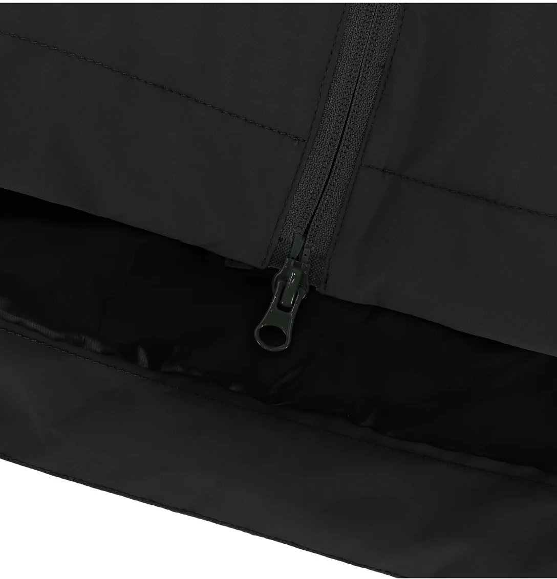 Besonders praktisch sind die seitlichen Einschnitte, die mit Druckknöpfen fixiert werden können, und der etwas längere Rücken, der dich auch bei Bewegung warmhält. Die verstellbare Kapuze sowie die Armabschlüsse lassen sich individuell anpassen, während die abgedeckten Reißverschlusstaschen all deine Essentials sicher verstauen.
