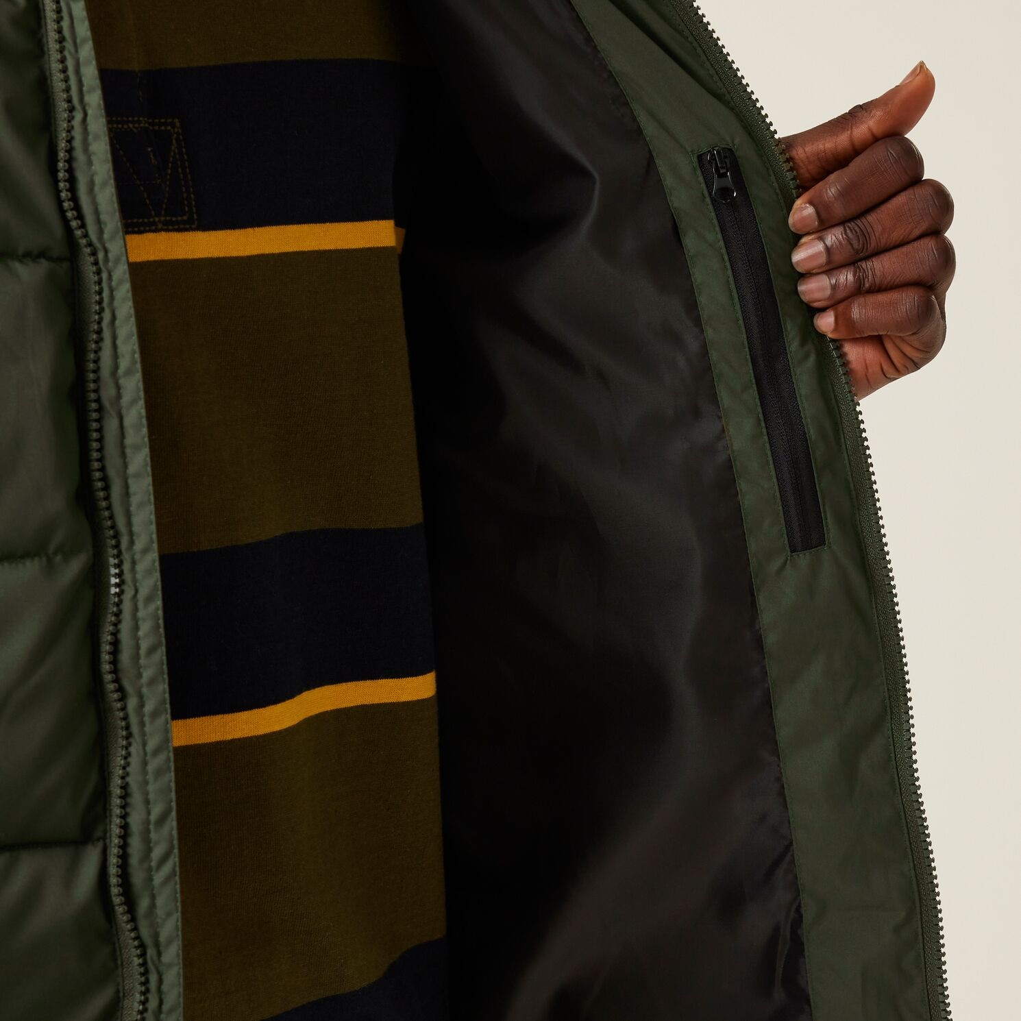 Praktische Details wie die innere Sicherheitstasche für Wertsachen und eine verstellbare Kapuze machen diese Jacke nicht nur wetterfest, sondern auch alltagstauglich. Die tief angesetzten Reißverschlusstaschen bieten genug Platz für alles, was du unterwegs brauchst, während die integrierten Wetterschutzbündchen deinen Komfort perfekt abrunden.
