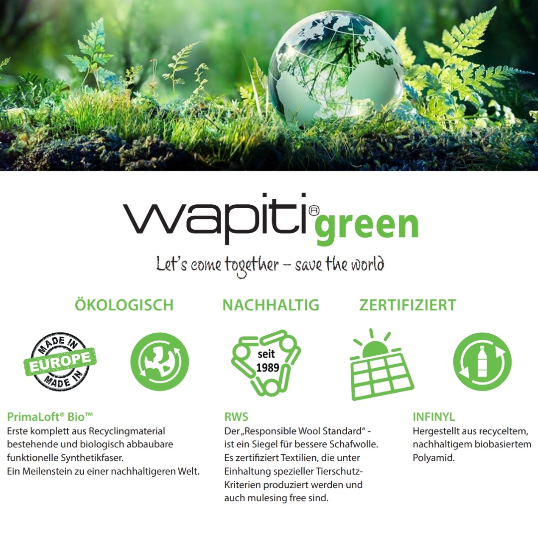 Trekkingsocken von WAPITI mit einem hohen Anteil an Merinowolle (21%). Merinowolle ist antibakteriell und riecht nicht... auch nach mehrtägigen Trekkingtouren. Die Socken sind an der Sohle besonders gepolstert und haben ein anatomisch geformtes Fußbett. Außerdem sorgen Komfortbund und Schienbeinprotektor für hohen Tragekomfort. Reibung wird durch den Einsatz von Kettelnähten verhindert.